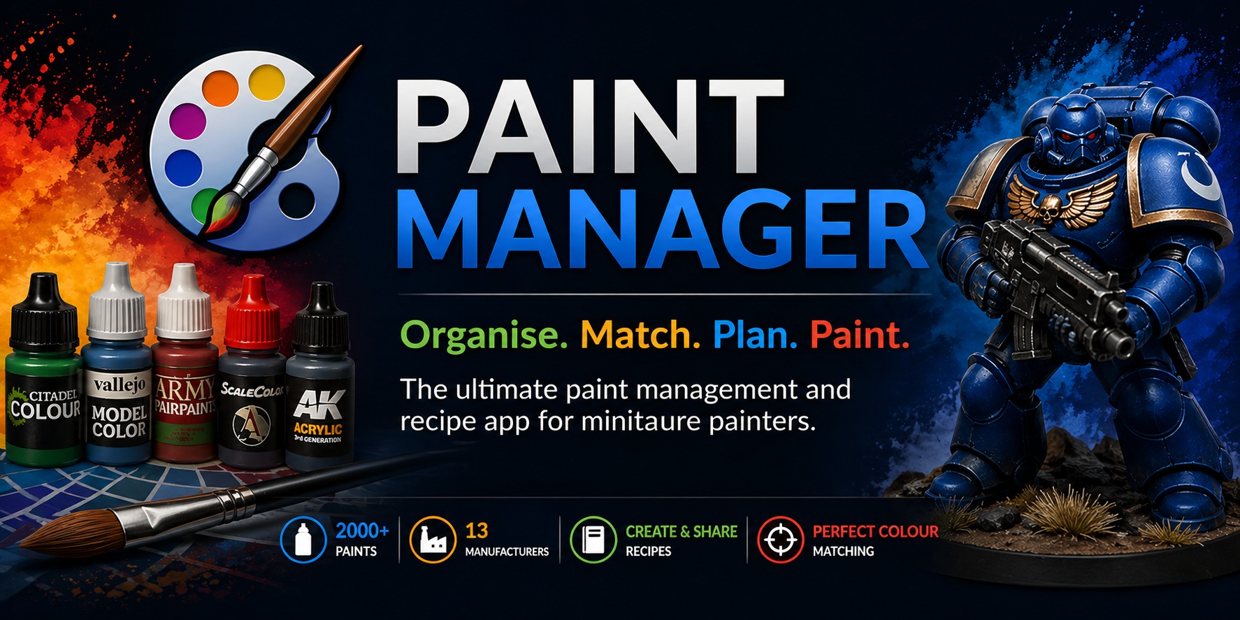 Over 2,000 paints from 13 manufacturers.